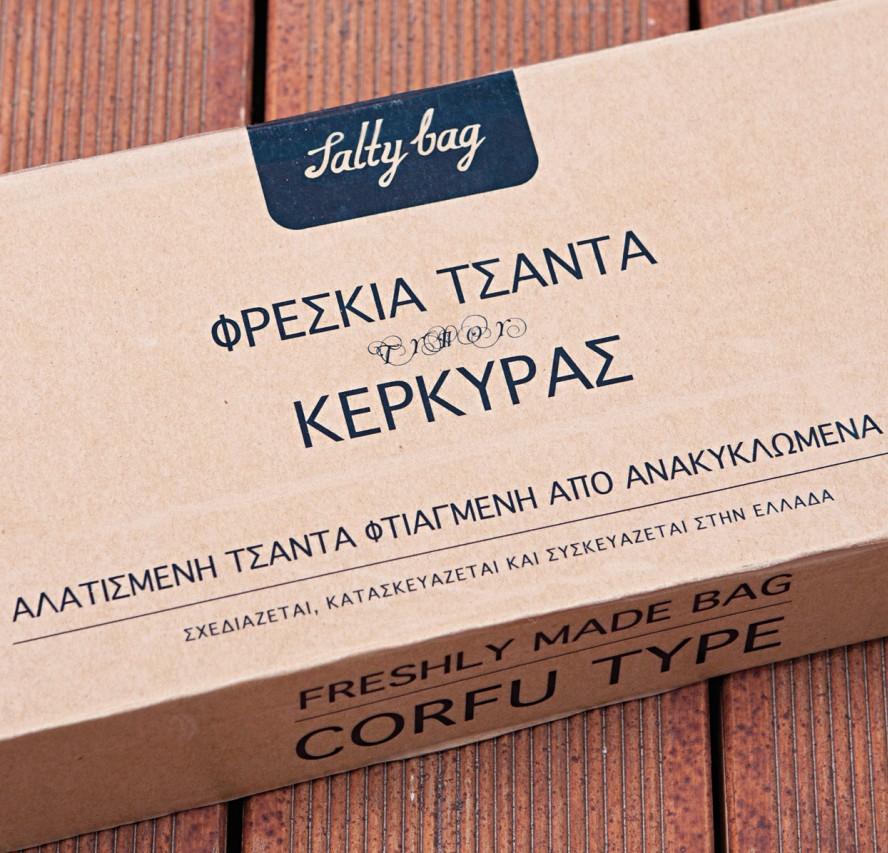 Το όνομα αυτής Salty Bag και έδρα της η Κέρκυρα. Πρόκειται για την πρώτη upcycling εταιρεία στην Ελλάδα και όπως δηλώνουν οι δημιουργοί της.